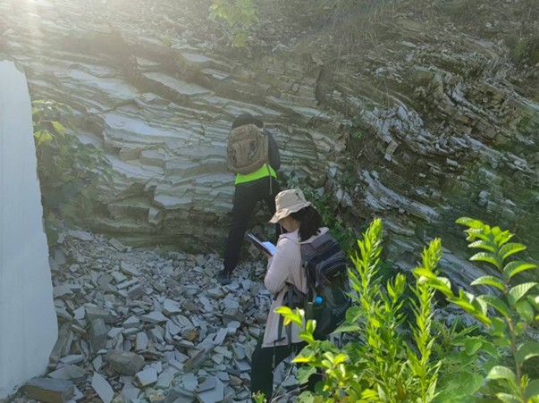 8月23日,同学们开始了野外填图实习的第一天,按照既定路线寻找和观察野外露头地层。从志留系的高家边组到二叠系的栖霞组,再到三叠系的青龙组,大家根据岩性和厚度变化辨别地层界线,测量产状,描述重要构造点特征。各小组分工明确,有序进行着填图工作,第一天的填图工作顺利完成!