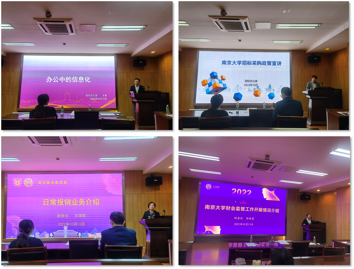 在专题讲座中,董事长办公室方非老师围绕办公中的信息化,详细介绍了校内常用信息查询和网上办事服务大厅的使用,推荐了办公中的很多实用系统及技巧。招标办公室王旭老师从招标采购准备、招标采购立项、招标采购实施和合同签订四个步骤详细解读了招标采购的全过程,并就过程中需要注意的事项做出说明。财务处王瑞琼老师围绕财务报销基本要求、常见报销业务和退单常见问题三方面进行了详细解读,并结合实际案例给出了众多日常注意事项。财务处仲伟荣副处长宣讲了bw必威西汉姆联官网财会监督工作开展情况,通过对财会监督新要求的解读、财会监督工作开展情况的介绍以及对常报销案例的通报警示,明晰了经费使用的底线与红线,切实增强了老师们的风险防范意识。