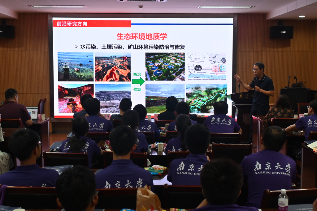 随后,各位学业导师向同学们介绍了学院不同的专业研究内容和方向。水文与水资源专业的李月婷老师对水文地质的研究方向和人才培养做了详细介绍;地质工程专业的冀胤霖老师向大家介绍了工程专业的发展前景和团队力量;地球化学方向的周斌老师为同学们详细介绍了学科历史与发展前景;行星科学方向的王涛老师通过幽默的话语简要介绍了行星科学的专业内容,并对专业同学寄以厚望;地球物理学专业的翁辉辉老师介绍了学业特色与专业优势;矿床学方向的陈晨老师就矿床学专业的特色进行了生动的介绍;岩矿方向的李军勇老师就专业团队和学科前景进行了解读。在欢乐又亲切的介绍中,各位老师表达了对地科院新一批学子殷切期望,期待同学们能够在接下来的学习中不断提升自我,探寻自我方向。