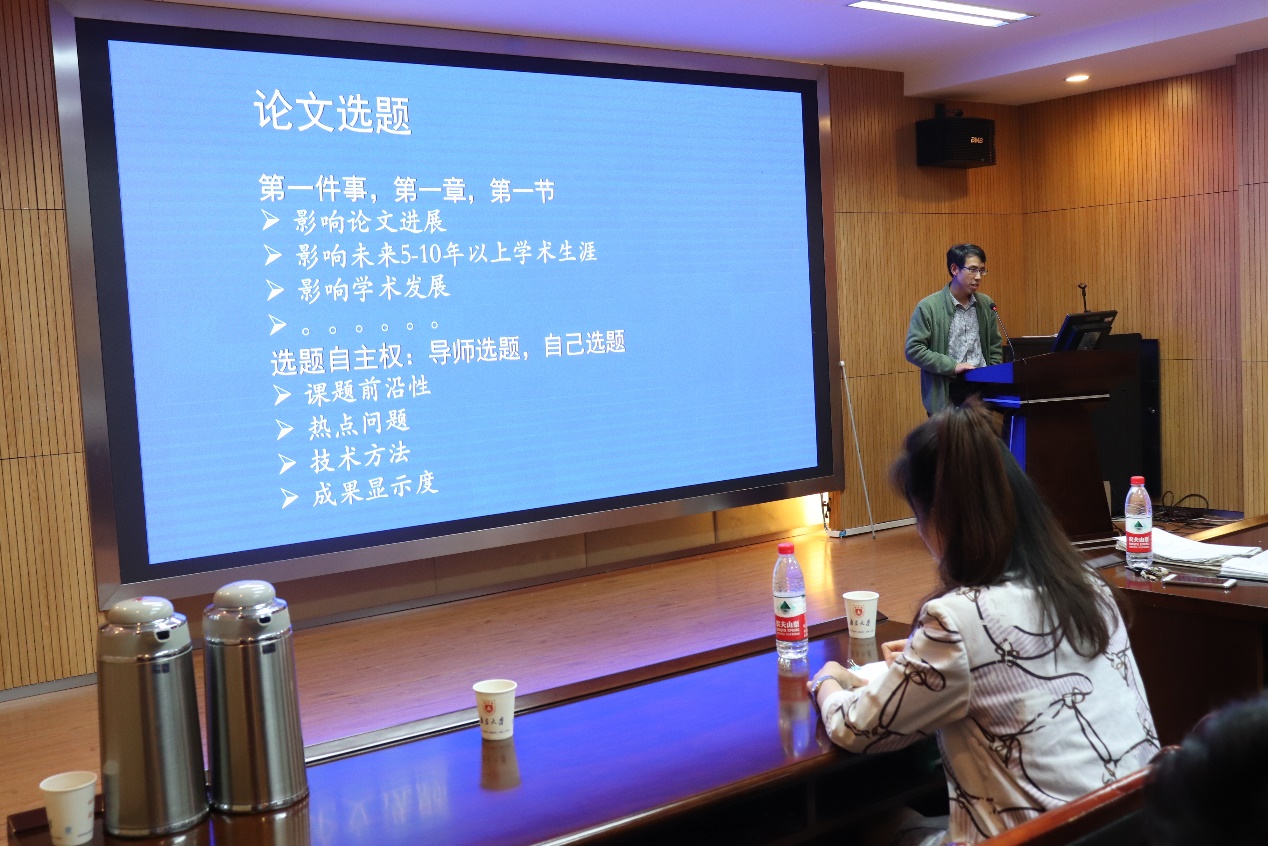 王博教授作为本次系列讲座的第一位特邀嘉宾与同学们分享了在“论文的选题和问题的凝练与分解”方面的经验和建议。王博老师指出,论文选题非常重要,可能会影响自身未来5-10年的学术生涯,因此需要认真考虑。