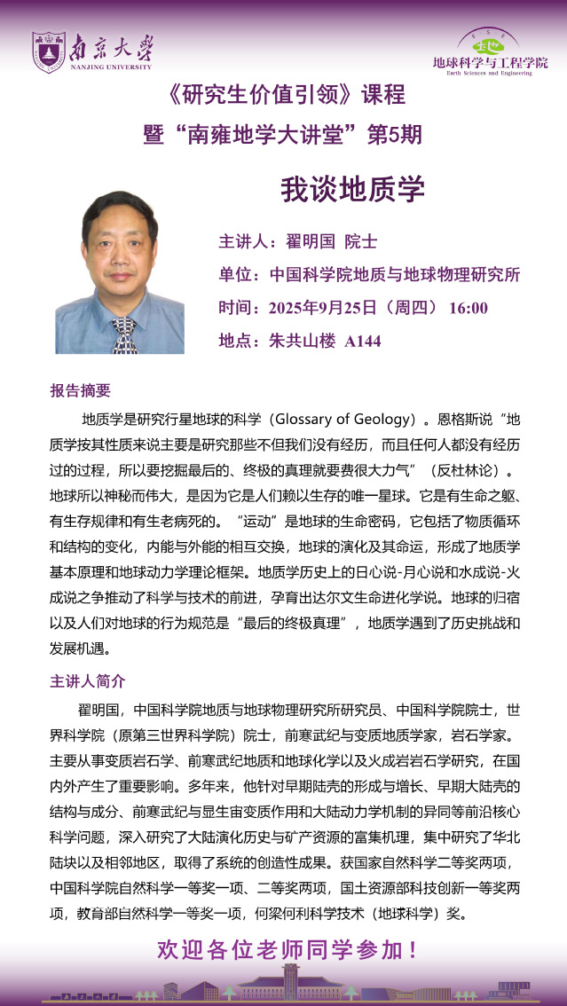“南雍地学大讲堂”第五期——我谈地质学
