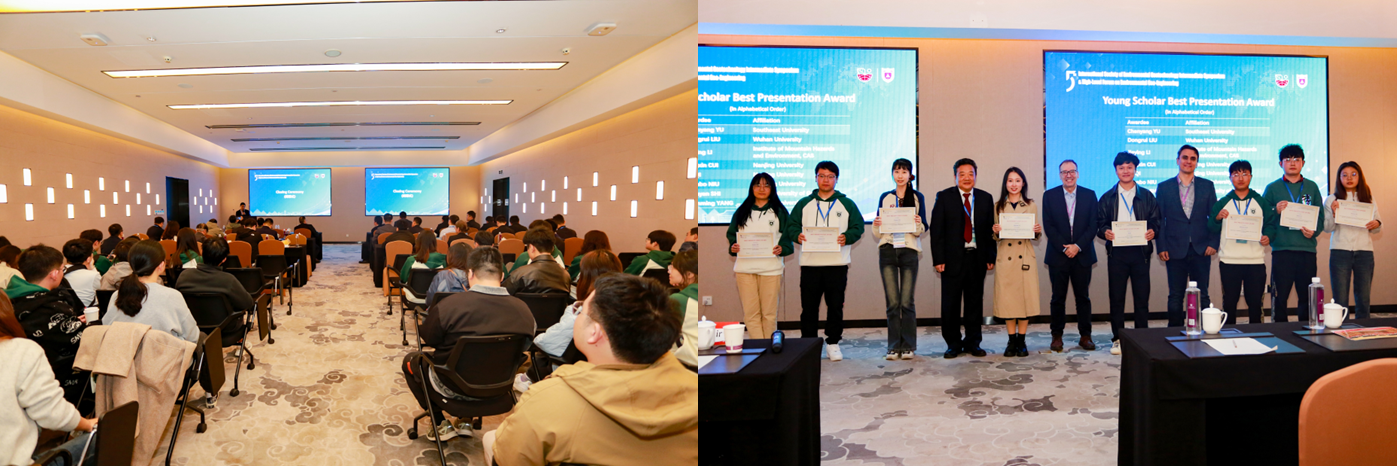 在两天会期中,参会代表围绕论坛主题和议题进行了广泛和深入的交流,分享了环境岩土工程领域的最新研究成果,涵盖气候变化、污染控制、地质灾害防治等诸多方面。Hilary I. Inyang教授、Charles W.W. Ng教授、Irene M.C. Lo教授、加泰罗尼亚理工大学Enrique Romero教授、斯卡帕矿业服务有限公司Sue Struthers博士、成都理工大学范宣梅教授、清华大学胡黎明教授、塔夫茨大学大学Farshid Vahedifard教授作为嘉宾参加了圆桌讨论,就领域前沿问题和未来发展方向进行了深入的探讨。11月17日下午,施斌教授、Enrique Romero教授、Farshid Vahedifard教授为8位“最佳报告奖”获奖研究生颁奖。