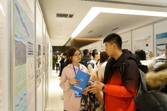 本次年会为了提供更多的讨论交流机会,设立了两个单独的时间段进行展板交流,累积时间2个半小时。共有70余位资深学者和青年才俊通过展板介绍自己的最新研究成果,吸引了众多代表参与讨论。为了增加趣味性和鼓励展板交流,设立了针对展板交流的奖品,赞助商提供的地质锤、登山包等具有专业特色的奖品让获奖者开心不已,活跃了会场气氛。