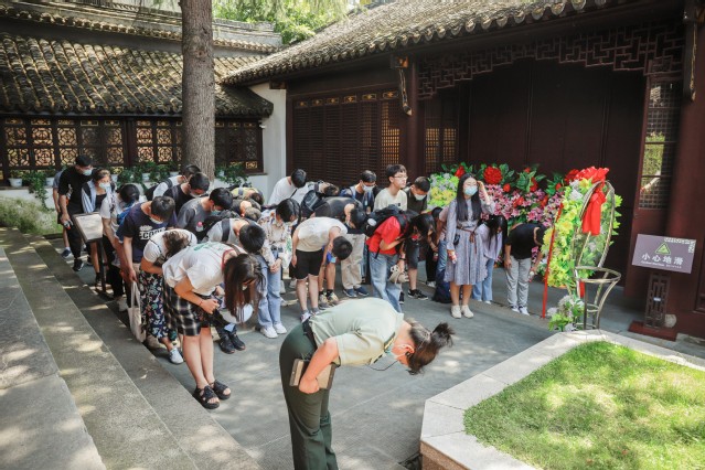 除了深切感受到新四军将领和战士们的战友真情,生活上领导与战士们同吃共住,不搞特殊化,我们也看到了坚贞不渝的革命爱情。“一笑艰难成往事,共盟奋勉记假期”见证了陈毅与张茜三十多年的相濡以沫,庭前安葬的革命伉俪粟裕和楚青同志的部分骨灰,引无数党员同志来此鞠躬致敬。