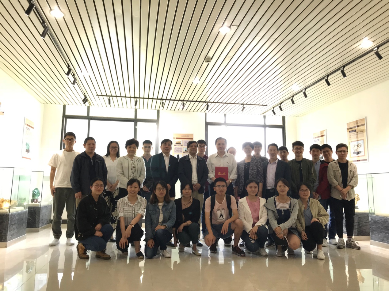 仪式结束后,於晓晋先生应邀为公司研究生和本科生作了题为“矿物晶体的观赏与收藏” 学术报告。结合多年工作经验,为员工讲解了如何鉴别矿物晶体,图文并茂,让同学们领略了大自然的鬼斧神工,进一步加强了对地质专业的热爱。