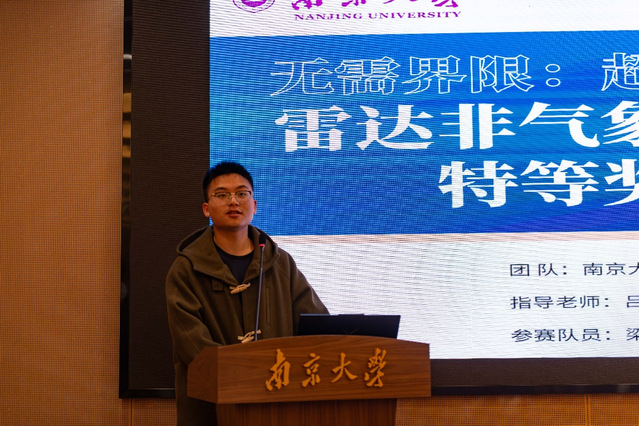 杨博同学分享了自己从关注比赛,联系老师组队,到参赛的心路历程。他向大家介绍了围绕气象监测领域毫米波雷达的智能识别开展的一系列工作以及取得的显著成果,同时也分享了自己参赛的切身经验,建议同学们在比赛时要进行答辩预演、抓住亮点。