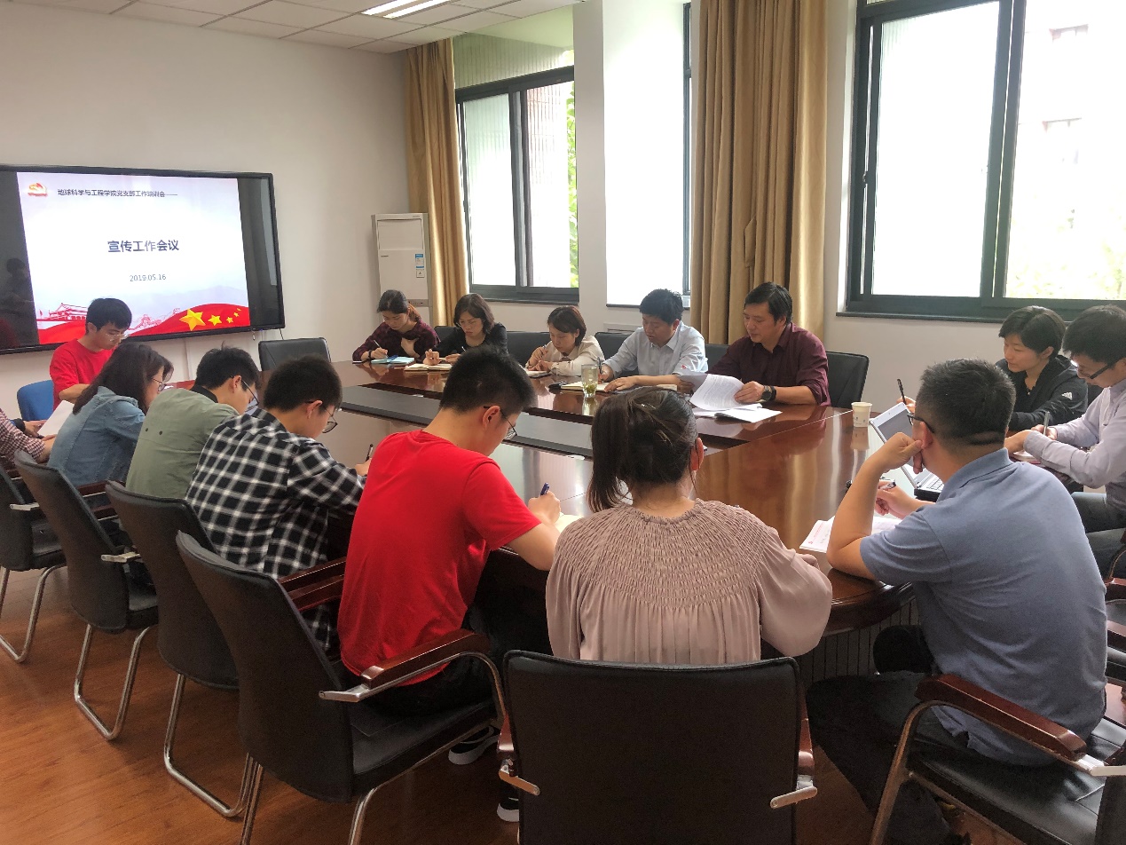 5月16日下午,地球科与工程公司党委在朱共山楼212会议室举行2019年第四期党支部工作培训会暨宣传工作会议,会议由党委书记王唯主持,党委副书记毛予倩、党委宣传委员陆现彩、副经理夏敏、各支部宣传委员参加会议。