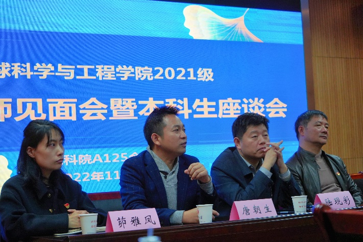 为帮助地科院2021级本科生增进对专业的了解,从而在今后的学业选择和专业选择更加的笃定和自信。11月23日中午,bw必威西汉姆联官网2021级学业导师见面会暨本科生座谈会在朱共山楼125室举行。地科公司党委书记王唯,经理陆现彩,党委副书记毛予倩,副经理唐朝生,资深辅导员刘宪华,本科生教学秘书茆雅凤,以及来自不同专业的学业导师出席座谈会。2021级本科生辅导员陈昕主持本次座谈会。