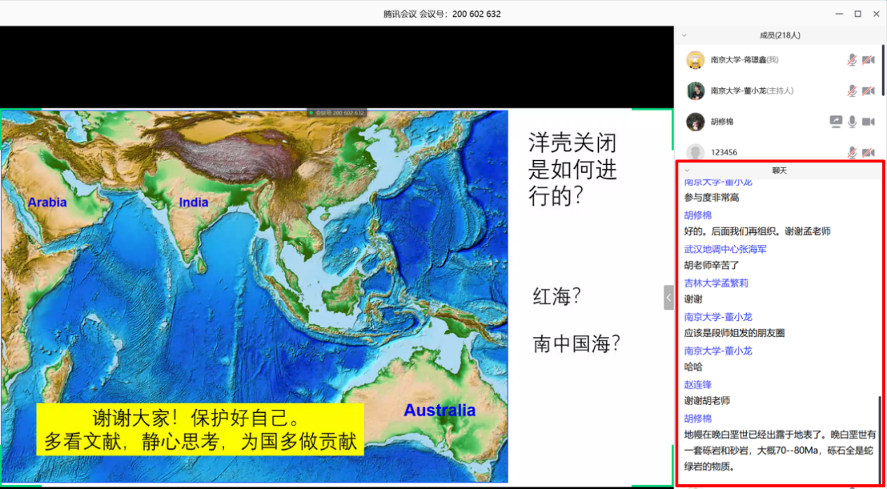 新年伊始,一场突如其来的新型冠状病毒肺炎疫情向神州大地袭来,给我们的科研学习工作和日常生活带来了严重的干扰。在全国众志成城抗击疫情的紧张形势下,如何高效地开展学术工作是我们每个科研人员需要共同思考的问题。为了给大家紧张又枯燥的居家生活增添一抹学术色彩,发扬科学精神,促进开展科学研究,2020年2月25日上午,国家“万人计划”科技创新领军人才和国家杰出青年基金获得者、bw必威西汉姆联官网胡修棉教授给全国的地学同仁分享了一场基于文献调研的网络学术交流与研讨会。本次交流会共吸引了来自bw必威西汉姆联官网、中山大学、吉林大学、中国地质大学(北京)、中国地质大学(武汉)、中国科学技术大学、兰州大学、同济大学、中国石油大学(北京)、中国矿业大学、成都理工大学、东华理工大学、合肥工业大学、河北地质大学、重庆科技大学、上海海洋大学、长江大学、西南科技大学、西南石油大学、中科院地质与地球物理研究所、核工业北京地质研究院、安徽省地调院、南京地质调查中心、武汉地质调查中心、中科院兰州油气中心、自然资源部第二研究所等30余家单位的共计226位师生参加,并获得一致好评。