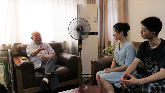5月20日校庆当天的下午,地科院本科生党支部3位党员代表和1位团员代表一同前往王徳滋院士家拜访。在家门口,我们见到了带着满面和煦笑容,热情欢迎我们的王院士。王院士年逾九旬,依然精神矍铄,朱颜鹤发,亲切和蔼。
