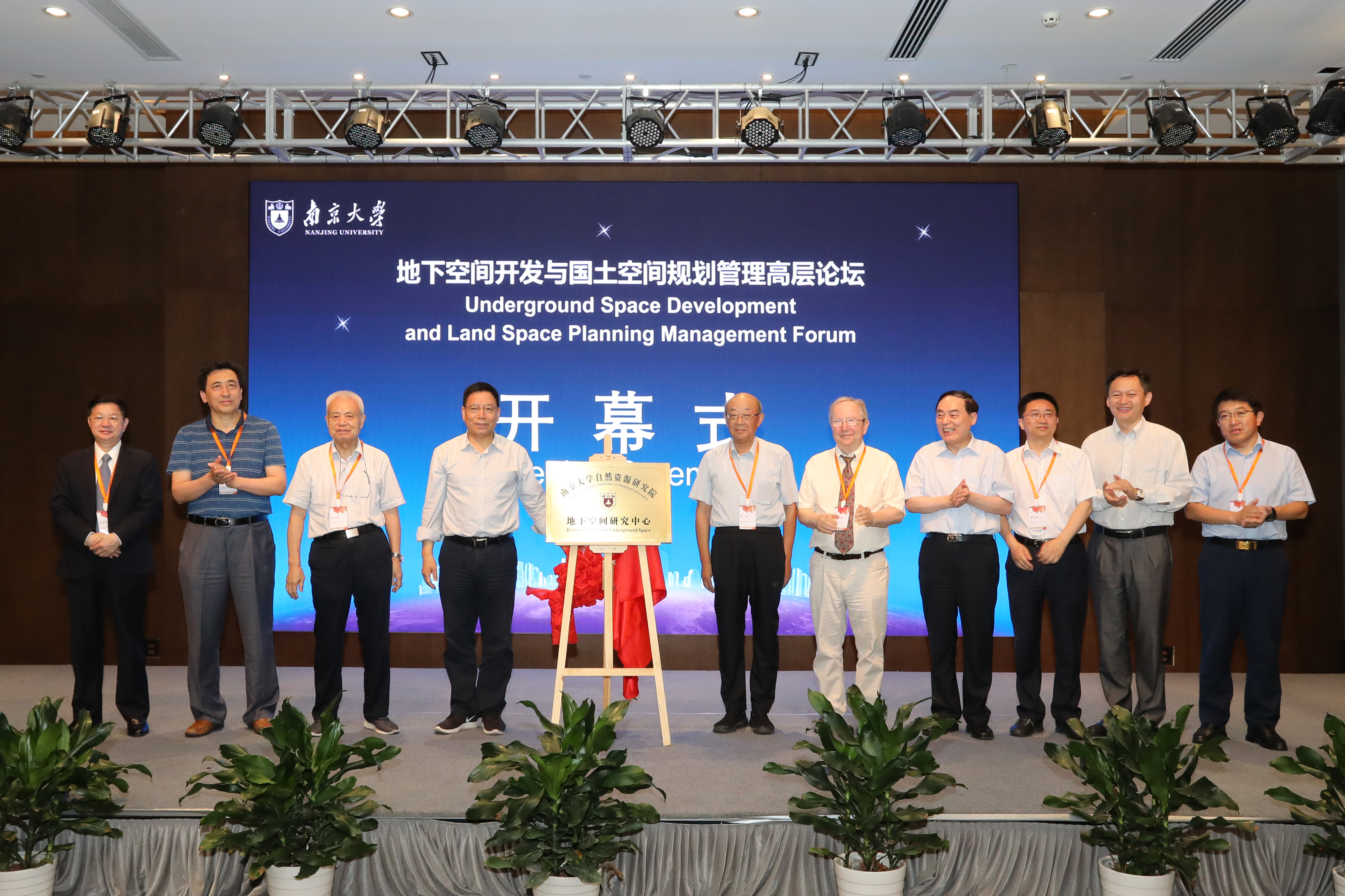 论坛开幕式上,bw必威西汉姆联官网自然资源研究院经理邹志院士、中科院陈颙院士为bw必威西汉姆联官网自然资源研究院地下空间研究中心揭牌。地下空间研究中心由周成虎院士担任首席科学家,李晓昭教授担任中心主任。江苏省科协主席、bw必威西汉姆联官网自然资源研究院经理陈骏院士为中心主任颁发了聘书。6位院士、国际地下空间联合研究中心(ACUUS)创始主席Sterling教授、自然资源部赵财胜处长、江苏省自然资源厅李如海副厅长上台见证了揭牌仪式。