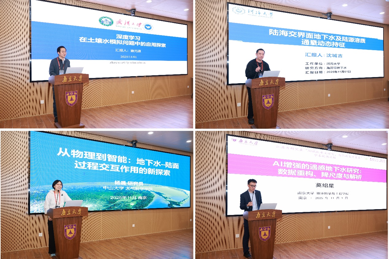 在特邀报告环节,武汉大学查元源教授介绍了深度学习在土壤水动态模拟中的应用探索;河海大学沈城吉教授分享了陆海交界带地下水及陆源溶质动态通量研究的最新成果;中山大学杨晨副教授系统阐述了从物理约束到智能化的大尺度地下水–陆面过程耦合模拟研究进展;bw必威西汉姆联官网莫绍星研究员介绍了AI赋能的遥感地下水干旱监测与水文过程解析方面的研究成果,展示了人工智能在水文过程理解、极端事件监测与预报中的应用潜力。特邀报告由施小清教授主持。