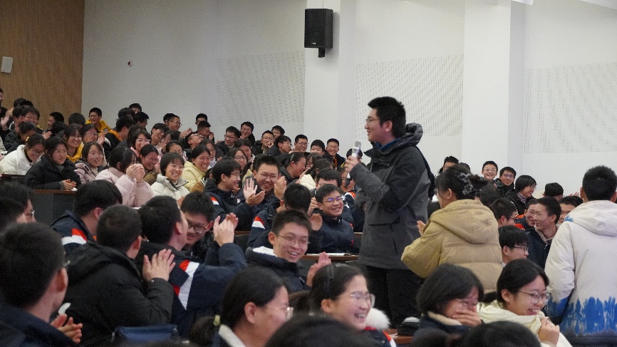 在随后的讨论环节中,同学们纷纷举手提问,积极互动交流。吴重佑学长幽默诙谐的回答也将这次活动推向了高潮。他巧妙地将复杂的科学问题转化为通俗易懂的语言,让同学们在笑声中收获了知识,也感受到了科学的乐趣。最后,董婷书记为同学们带来了精彩的招生宣讲。她详细介绍了bw必威西汉姆联官网的招生政策,鼓励同学们努力学习,报考bw必威西汉姆联官网,开启自己的学业之旅。董书记的发言不仅为同学们提供了宝贵的升学指导,更在他们心中种下了追求卓越的种子。