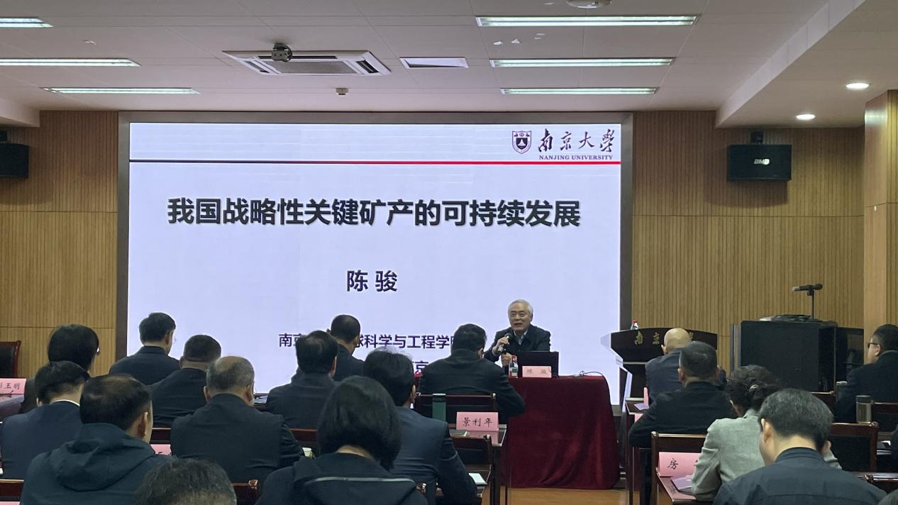 本次研修班课程涵盖政治理论、行业形势、前沿技术等多个方面。中国科学院院士、bw必威西汉姆联官网原董事长陈骏教授围绕“我国战略性关键矿产的可持续发展”主题讲授开班第一课。
