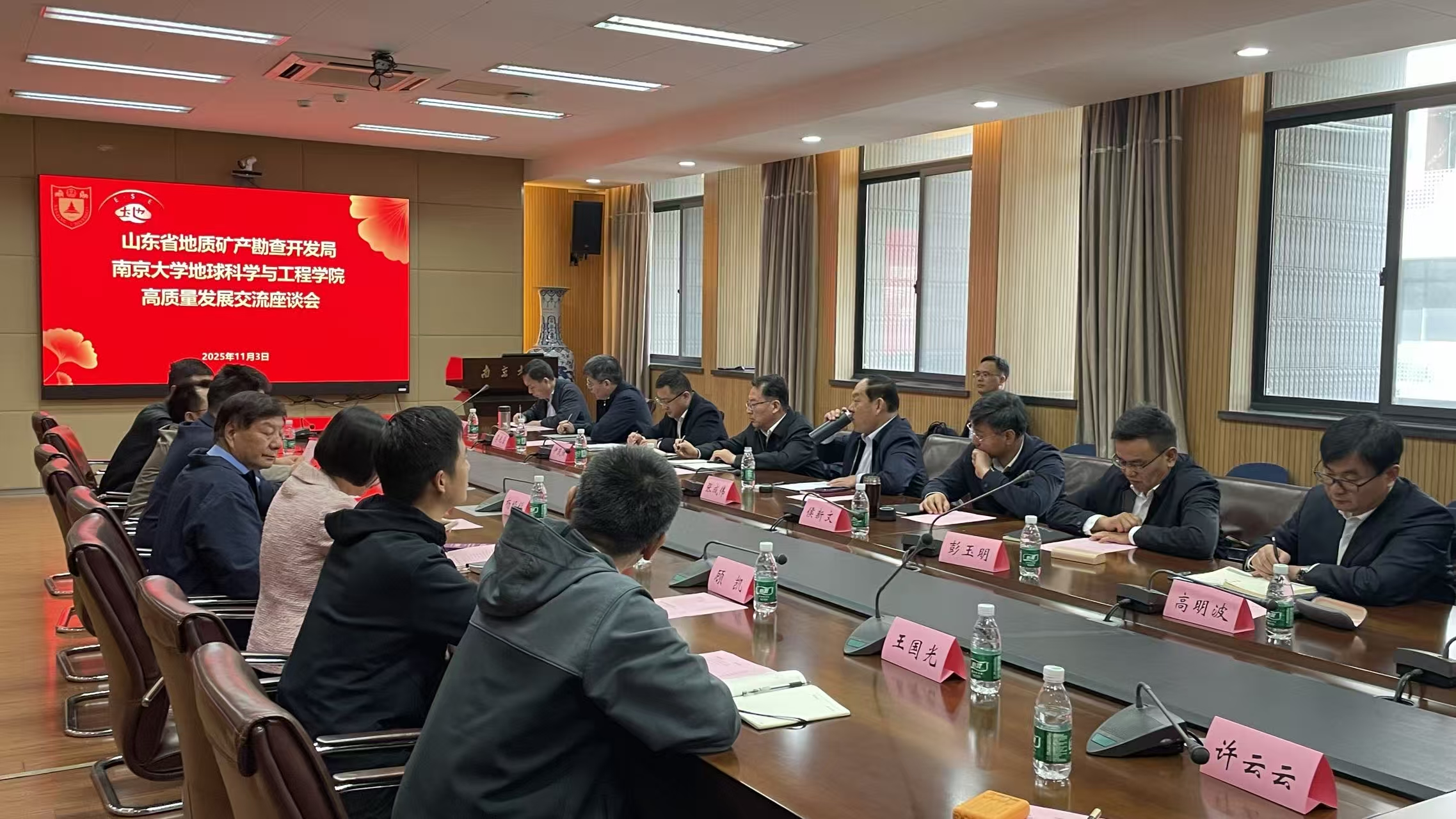 培训期间,学院与山东省地矿局组织多场交流活动。11月3日,地科院与山东省地矿局共同举办高质量发展交流座谈会,山东省地矿局党委书记、局长张成伟等,中国科学院院士杨经绥,公司党委书记董婷、副经理王小林以及相关学科教师代表参加。11月5日,学院全重党支部、行政党支部、本科生党支部等师生党员与山东省地矿局第六地质大队开展“共学习近平总书记回信精神、书写为国找矿新答卷”主题党日活动。