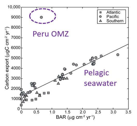 图1. 现代海洋重晶石累积速率和有机碳输出速率的相关性图解(引自Carter et al., 2020 Minerals)