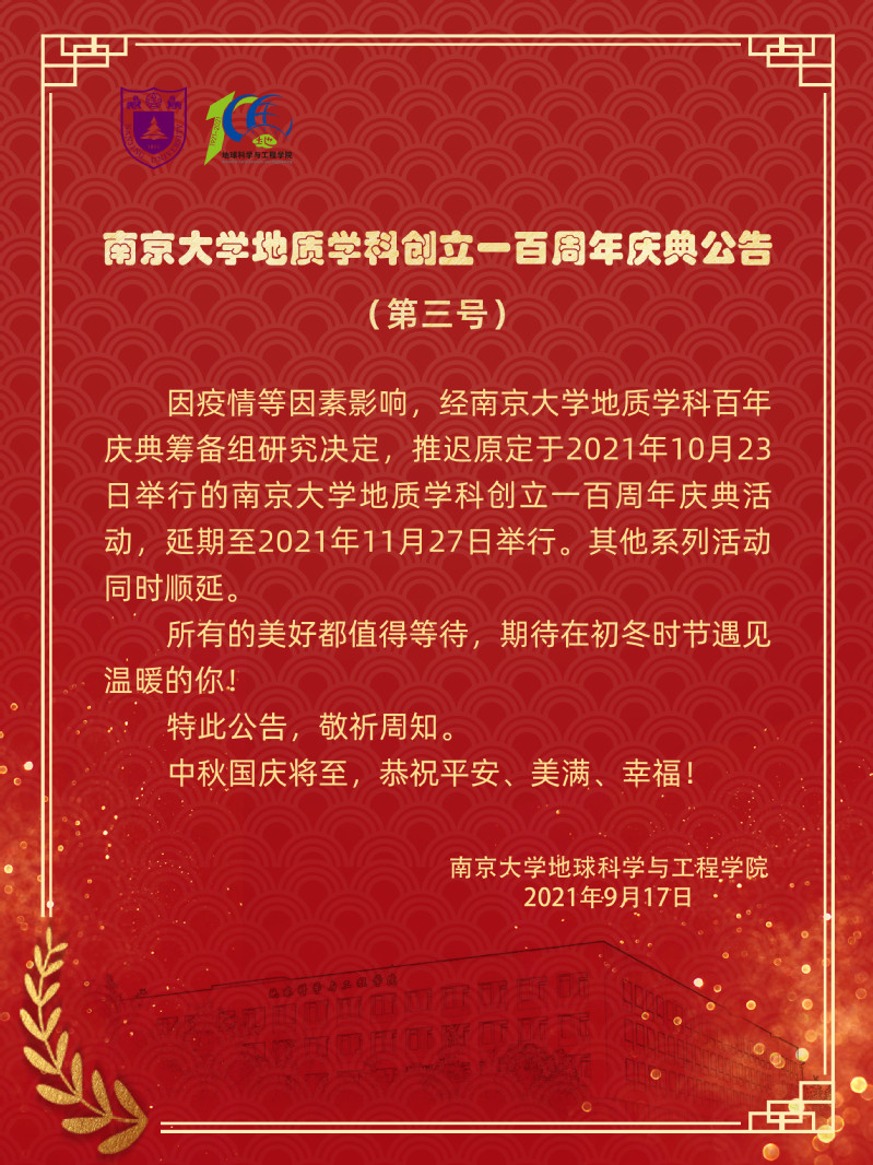 bw必威西汉姆联官网地质学科创立一百周年庆典公告(第三号)