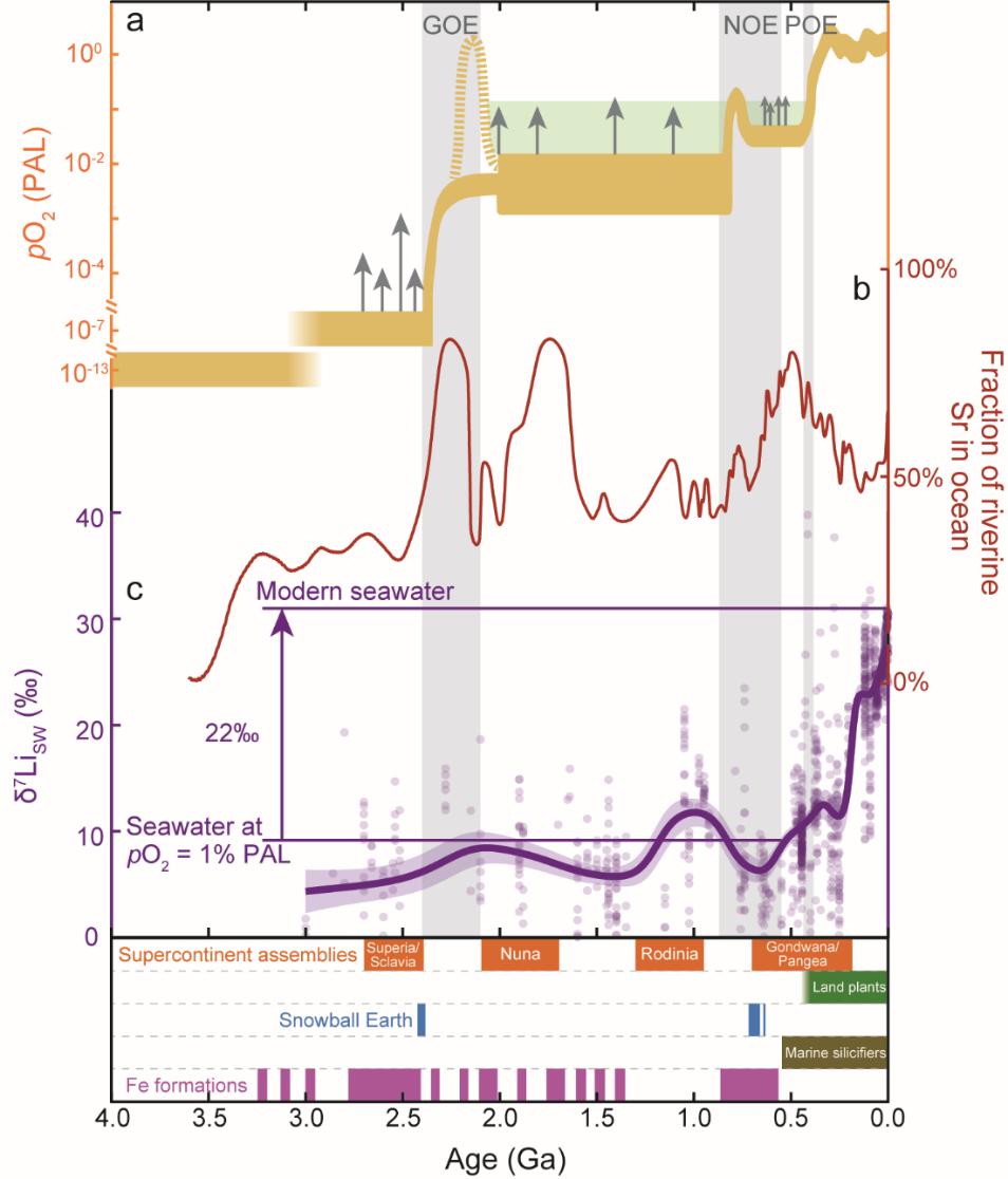 Kalderon-Asael, B., Katchinoff, J. A. R., Planavsky, N. J., Hood, A. v. S., Dellinger, M., Bellefroid, E. J., et al. (2021). A lithium-isotope perspective on the evolution of carbon and silicon cycles. Nature, 595(7867), 394-398. https://doi.org/10.1038/s41586-021-03612-1.