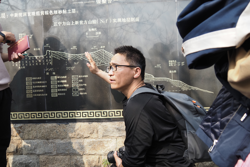 2024年3月16日,“地质学拔尖班”、“行星科学班”、“综合评价班”和“大地学实验班”等40名同学在王国光、王涛、张霞三位老师的带领下,将书本上抽象的知识点与野外生动具象的地质现象联系起来,感悟地质现象与地质历史演化过程。在方山火山地质剖面走廊前,大家详细学习了地质剖面图中上、下火山岩系的异同点。在老师的提示下,将火山机构、喷发规模与火山岩、次火山产状有机的联系起来。在看似毫不起眼的岩壁上,大家探讨了气孔分布的空间规律。同学们广受启发,大为鼓舞。