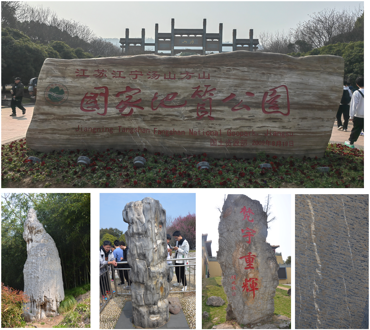 (从左向右依次为钟乳石、硅化木、白云岩碑材、路面地砖节理)