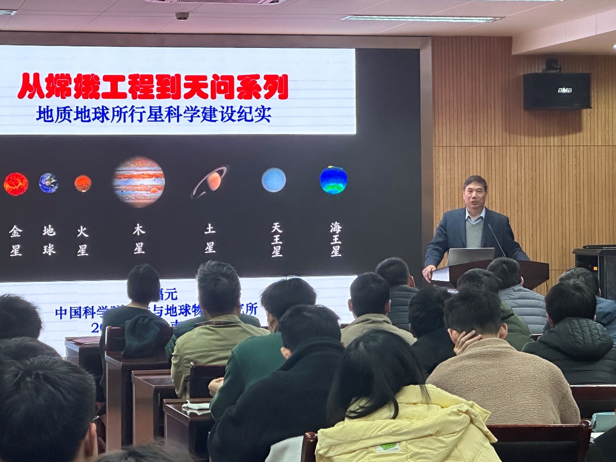 2024年3月15日,中国科学院地质与地球物理研究所研究员吴福元院士在学院做“从嫦娥工程到天问系列”的学术报告。地球科学与工程公司党委书记董婷代表地科院向吴院士的到来表示诚挚的欢迎,并主持了报告会。报告会现场师生济济一堂,气氛热烈。