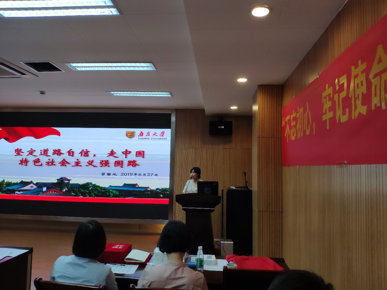 演讲结束后,有38年党龄的党委委员胡文瑄老师从四个方面对本次比赛进行了点评:第一,所有演讲者都心系国运,牢固树立家国情怀,并且通过对我们党的初心、道路,真理的检验标准及命运共同体等的分析,反观自身,践行初心;第二,微党课涉及面广,内容丰富,紧扣主题,从历史到现实,从英雄人物到长征精神、供给侧改革,涵盖了我国各方面的情况;第三,选手着装整齐、精神饱满,具有较强的感染力,展示形式多样。第四,选手表达生动,逻辑清晰,语言流畅。最后,胡老师希望大家今后在学习和工作中始终能够坚持“不忘初心,牢记使命”,再接再厉,砥砺前行,为建设“第一个南大”努力奋斗。