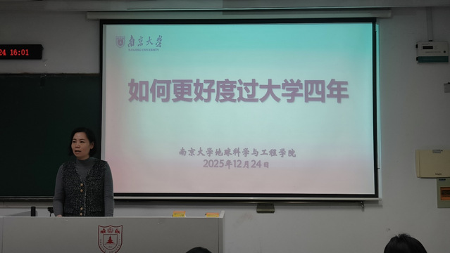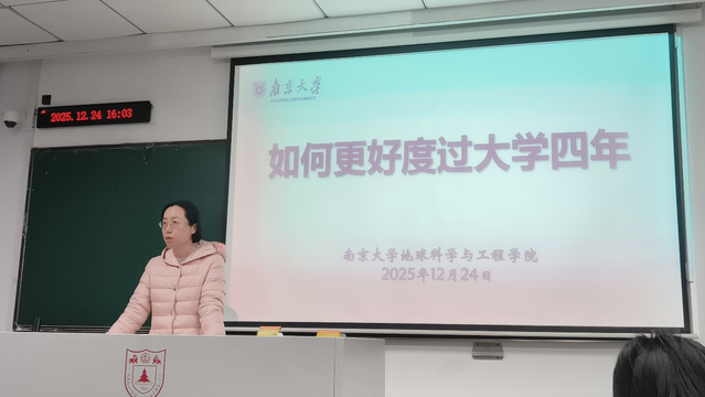 为帮助2025级员工更好融入老员工活、合理规划成长路线,2025年12月24日下午在鼓楼校区教108,地球科学与工程公司党委书记董婷、党委副书记姚静、团委书记陈昕为员工开展了以“如何更好度过大学四年”以及“执地学罗盘,拓展未来疆域——地学人的发展生涯与规划”为主题的地科院学业-生涯发展支持班会,为同学在地质学领域努力成长把脉定向、保驾护航。本次班会由姚静主持。