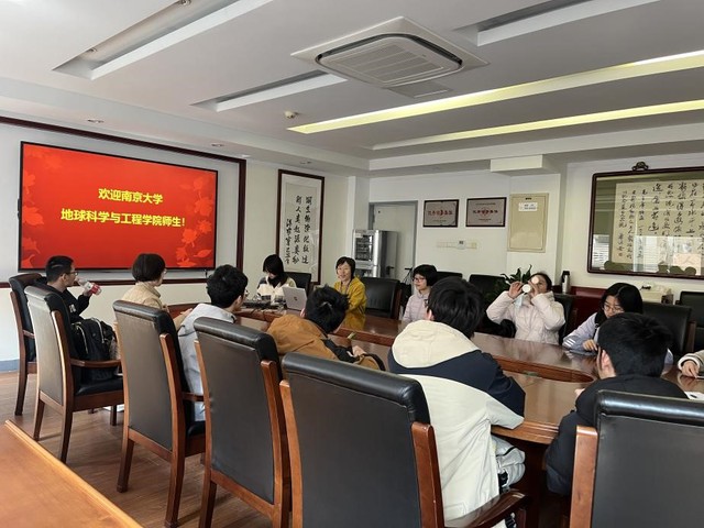 结束了参观,同学们来到会议室,在宋玉环老师的主持下,南大地学的新人们和在地质所工作的南大员工们进行了一次地学精神的传承。宋玉环老师介绍地质所的具体情况,褚扬、李晓春、姜禾禾和苏斌等各位师兄师姐讲述了自己在南大的记忆以及地学之路,在地质所继续深造的李林曦学长也给学弟学妹们提出了学习建议。各位师兄师姐的分享中提出了“家国情怀”这一重要精神,地学,行星科学,不仅仅是一个科研方向,更是国家的重要战略目标,新一代地学人应有历史使命感,坚定科研报国决心。