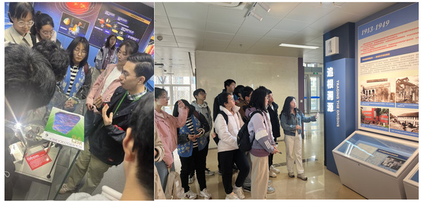 之后在王泽华学姐带领下,同学们参观了地质所所史馆,在这里同学们仿佛置身历史的长河中,见证了一代代地学研究者对脚下大地的赤诚、对祖国的热爱。走出所史馆,在赵朗学长的带领下,同学们和标本馆的矿物、陨石标本进行了一场跨越百万年的亲密的对话。