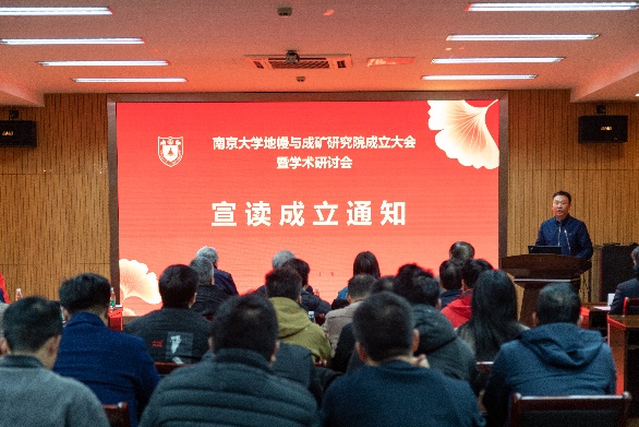 徐夕生经理主持了会议,代表新成立的研究院对各级领导的关怀和支持以及前来参会的院系领导、老师、同学们表示由衷的感谢。陈骏院士、许志琴院士和沈树忠院士先后发言,表示衷心祝贺并对研究院寄于厚望。陈骏院士认为,南大地球科学在花岗岩与成矿研究领域一直是强项,而地幔与成矿研究院的成立正当其时,对于填补南大地球科学人才培养短板和完善内生金属矿床成矿机制研究增添了浓墨重彩的一笔。许志琴院士强调地幔研究是大陆动力学研究的基石,研究院的成立对于发展深部地幔研究和增强地幔研究的国内外影响力具有重要意义,并代表大陆动力学研究院,愿与地幔与成矿研究院携手,为建设第一个南大添砖加瓦。沈树忠院士指出,地表生命演化和深部地幔作用息息相关,地球系统演变和生命大灭绝与复苏均从根本上都可能受制于深部地幔作用,表示其领导的生物演化与环境科教融合中心,愿与地幔与成矿研究院紧密合作,探讨地球科学系统多圈层之间相互关系和耦合作用。