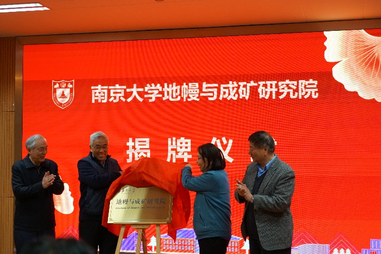 陈骏院士、许志琴院士、沈树忠院士和杨经绥院士共同为地幔与成矿研究院揭牌。