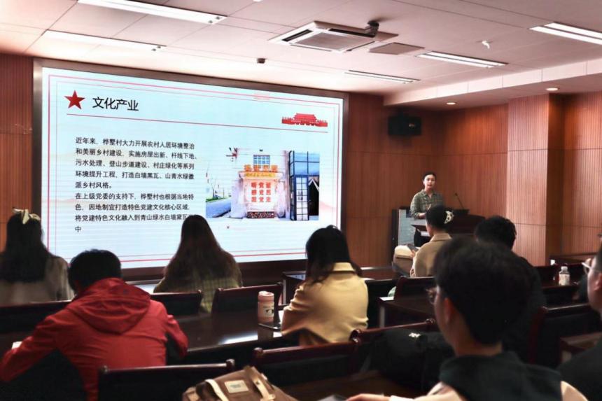 桦墅村位于栖霞区西岗街道周冲水库旁、栖霞山风景区东南。这里山水相依,风光旖旎,曾先后获得 “国际乡村协会优秀乡村示范奖”、“江苏省美丽乡村示范村”、“江苏省水美乡村”等荣誉,是现代乡村活化改造的典范。刘子儒同学着重介绍了桦墅村在乡村振兴,包括文化产业、社群治理、精准扶贫等多方面的突出成果。桦墅村利用“掌上支部”、“党群驿站”等党建特色点亮美丽乡村,助推产业升级,助力乡村振兴。