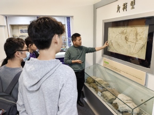在生物演化与古生物化石展室,众多生物化石,包括史前恐龙化石、犀牛化石、菊石化石、潜龙九龙壁等令人应接不暇。姜教授生动地讲述了这些化石的结构和功能,给小朋友们解释了,如何通过史前生物化石来推测当时的地球环境。