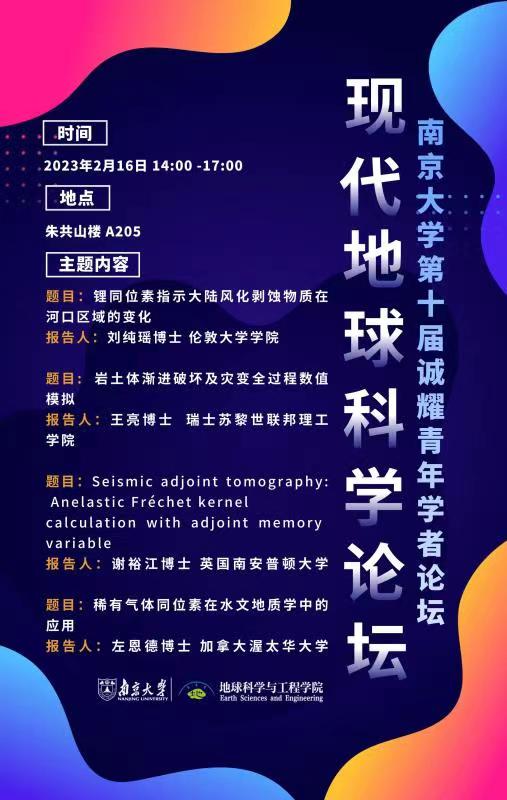 bw必威西汉姆联官网第十届诚耀青年学者论坛——现代地球科学论坛