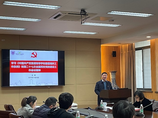 公司党委王唯书记作《中国共产党普通高等学校基层组织工作条例》和第二十七次全国高公司党的建设工作会议精神的辅导报告。他带领大家学原文,逐条学习了《工作条例》的具体内容,并结合自己的理解和实际工作情况以及巡视整改的要求进行详细讲解。王唯书记强调各支部要强化政治功能,履行政治责任,紧扣立德树人根本任务,扎实推进公司党的建设和思想政治工作,坚守为党育人、为国育才,努力培养德智体美劳全面发展的社会主义建设者和接班人。并且对公司党支部工作提出了要求,他希望各支部围绕工作职责,加强思想政治引领,筑牢理想信念根基,严格执行支部七项工作制度,要在进一步丰富主题党日的内容和形式,打造党建品牌,进而形成支部的特色上下真功夫。