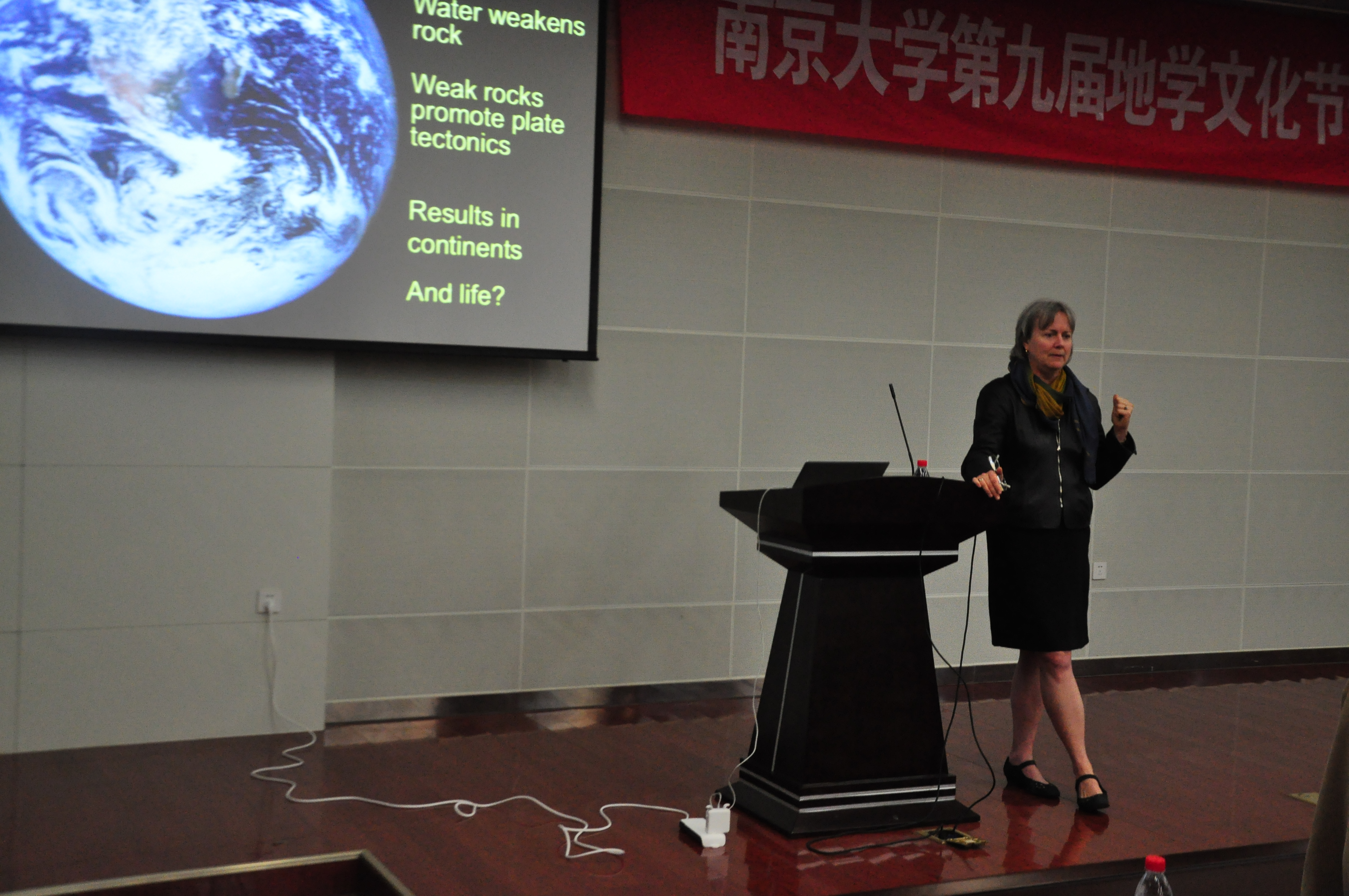 4月22日下午,Rudnick教授主要针对公司本科生作了一场题为“Earth's Unique Continents”的科普讲座,深入浅出地讲解了大陆的组成、起源和演化过程。讲座吸引了公司和兄弟院系(地海、环境、大气)两百多位师生。讲座在公司仙林校区朱共山楼一楼报告厅举行,公司陈立辉教授主持讲座,并简要介绍了Rudnick教授的经历和主要学术成就。