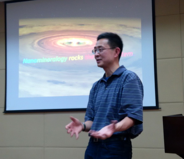 应公司张爱铖教授的邀请,美国加州理工学院马驰博士于5月18-19日在公司进行学术访问,并为公司师生作了题为“Nanomineralogy and Discovery of New Minerals”的学术报告。马驰博士是加州理工学院的矿物学家,任电子探针和扫描电镜实验室主任。他主要从事纳米矿物学研究。近10年,马驰博士使用原位微区微束分析在地球和陨石样品中已发现了29种新矿物,包括太阳系最早期形成的Panguite(盘古石)、Kangite(星钪石),地球下地幔最主要的组成矿物Bridgmanite(布里奇曼石--钙钛矿结构镁硅酸盐),长石成分辉石结构的高压矿物相Tissintite(钙硬玉)等。他和合作者们的研究成果为认识太阳系早期星云演化和地球深部物质组成作出了重要贡献。