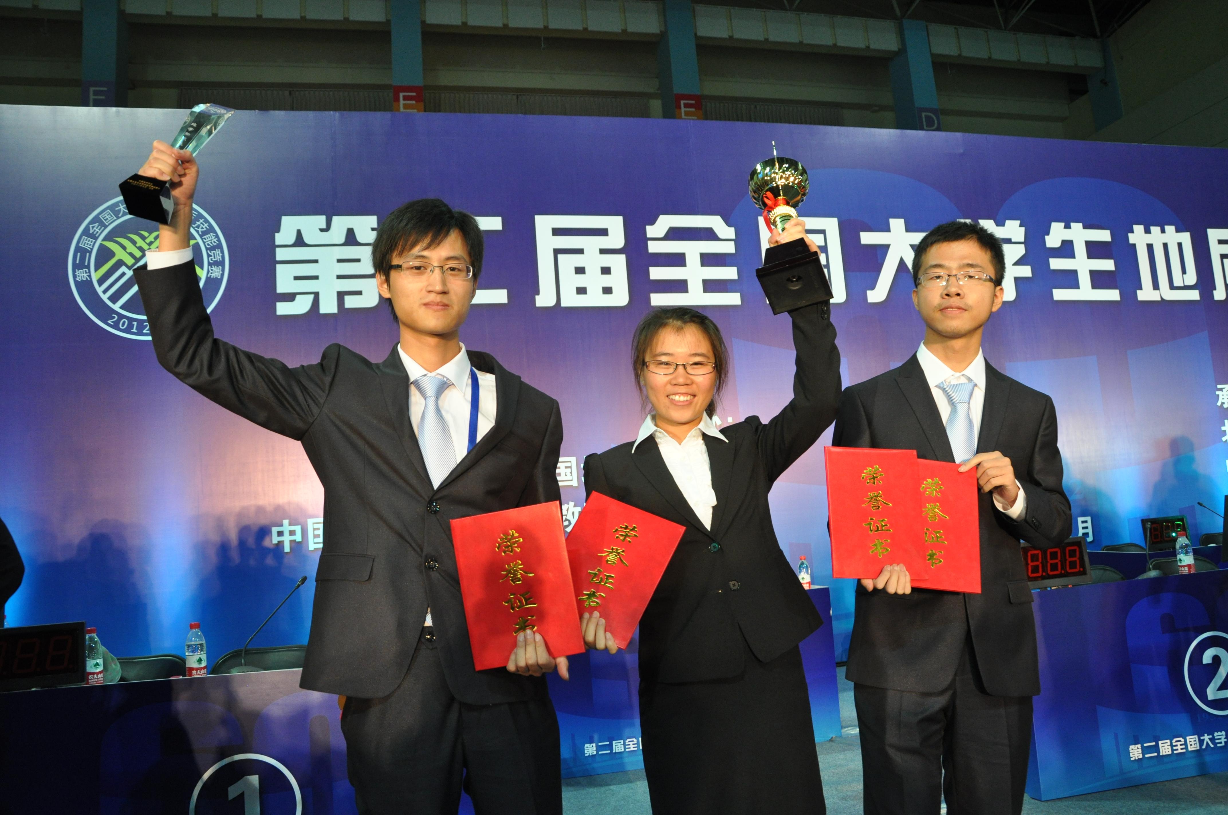 9月25日晚,在中国地质大学(北京)体育馆,隆重举行了地学知识竞赛暨大会闭幕式。按照既定赛程,地学知识竞赛由前三项比赛综合成绩最高的9所大学参加,按照现场答题成绩分别评定一等奖1个,二等奖3个,三等奖5个。公司参赛队员与中国地质大学(北京)、中国地质大学(武汉)、吉林大学、桂林理工大学等九所学校同台竞技。值得一提的是,公司是唯一一所登台竞技的综合性大学。公司黄旭栋、曾晗、潘君屹三位同学作为代表出战,经过90分钟的激烈鏖战,荣获地学知识竞赛一等奖,如愿捧回含金量最高的奖杯。