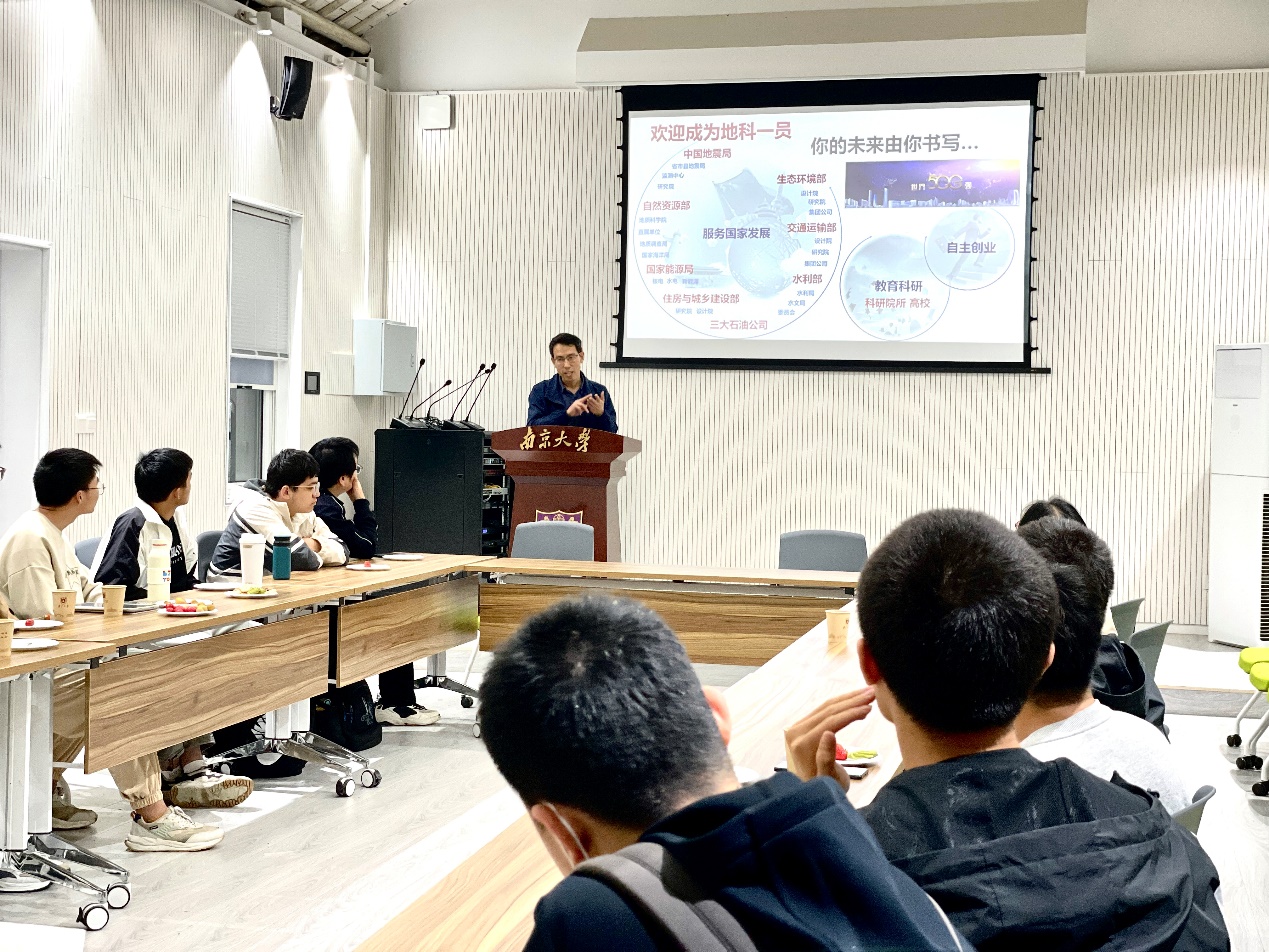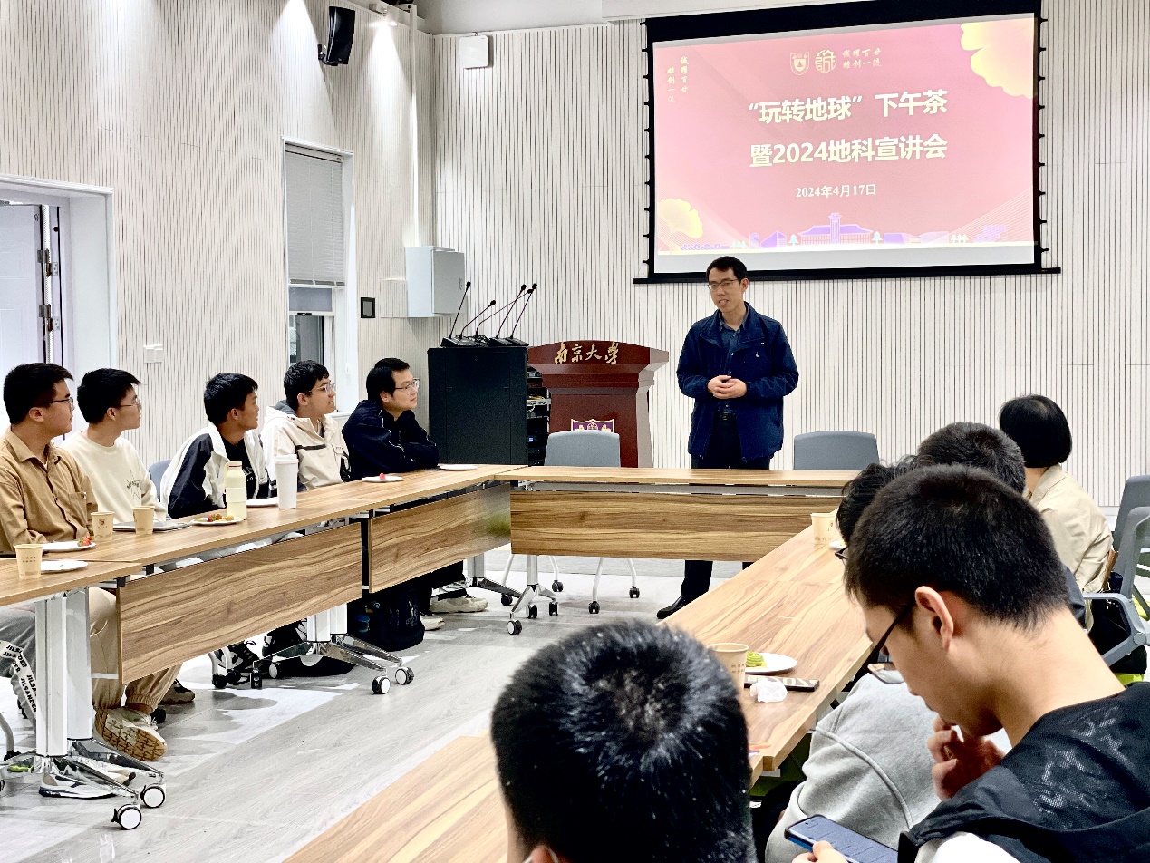 2024年4月17日下午,地科院联合安邦书院在鼓楼校区举行“玩转地球”下午茶暨2024大类分流地科宣讲会,活动邀请了地科公司党委书记董婷、教学副经理王博到场与员工作专业宣讲和分流政策解读。