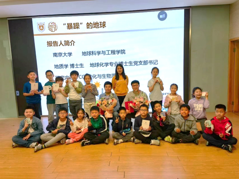 4月12日下午,地化专业博士生党支部陈梓銮、严子妮、倪伟、王敬朝等4名党员来到南外仙林分校燕子矶校区二年级(1)班,开展题为“探火山奥秘,访极地玄机”的科普讲座。