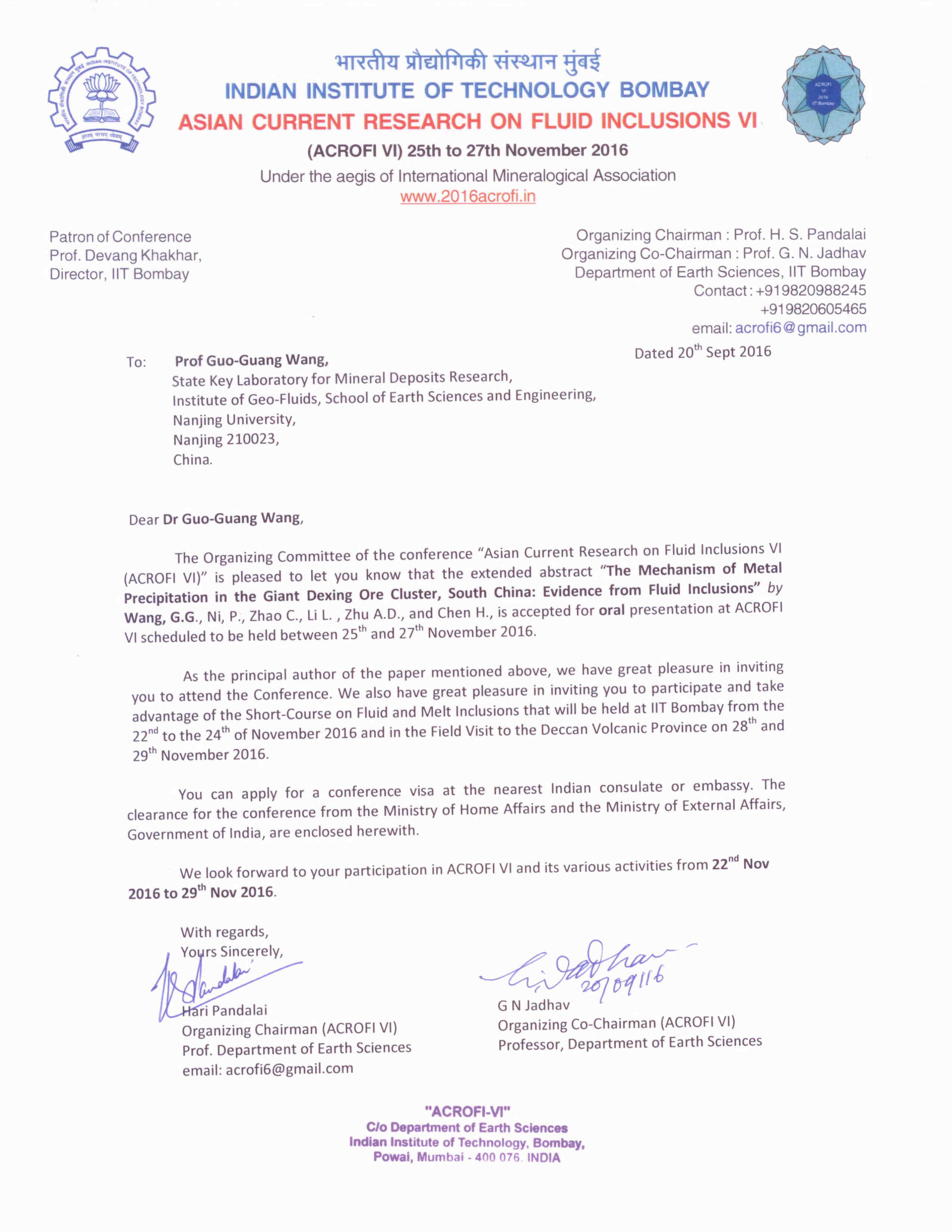 应ACROFI VI会议组委会的邀请,公司教师王国光拟于2016年11月22日至2016年12月2日赴印度孟买参加ACROFI VI会议并做口头报告。