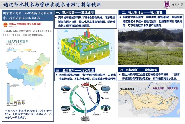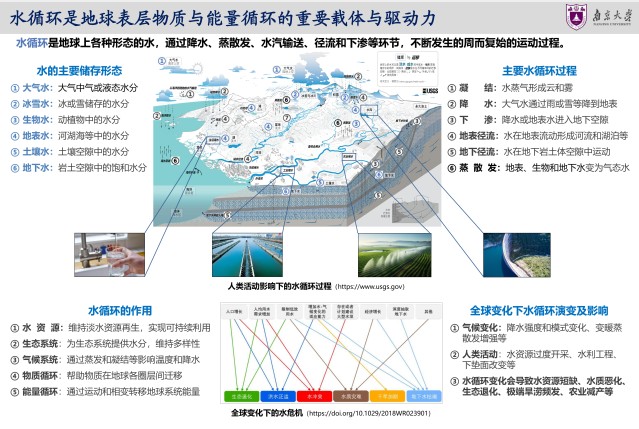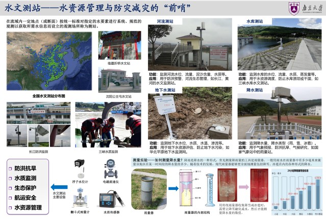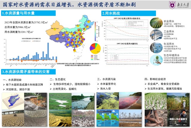 2025年3月22日是第三十三届“世界水日”,3月22日-28日是第三十八届“中国水周”。为深入学习贯彻习近平生态文明思想、习近平法治思想和习近平总书记关于治水重要论述精神,扎实推动水利高质量发展,保障国家水安全,南大地科院水科学系师生制作展出《探索水的奥秘、服务国家水安全需求》科普展板。水是生命之源,也是万妙之门。水文学是与国计民生息息相关的学科。国家对水资源的需求日益增长,水资源供需矛盾不断加剧,践行“节水优先、空间均衡、系统治理、两手发力”的治水思路,通过节水技术与管理实现水资源可持续使用。展览在鼓楼校区南园橱窗展出,欢迎大家前往观看,与我们一起探索水的奥秘。