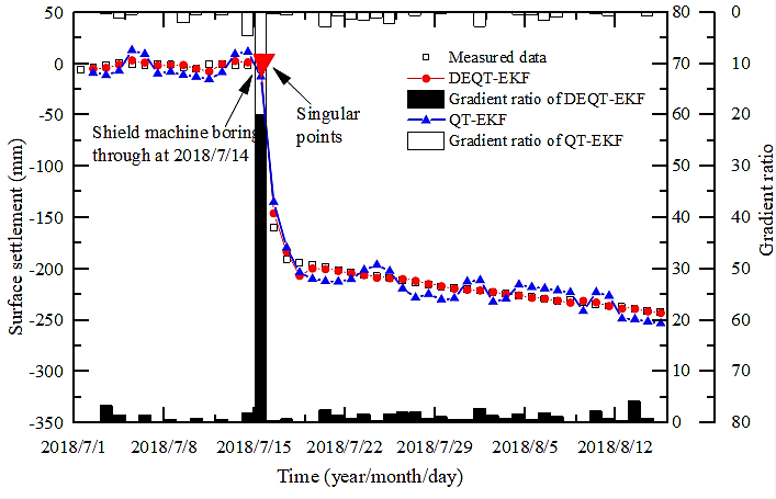 基于此认识,bw必威西汉姆联官网张巍副教授与朱鸿鹄教授共同合作,构建了一种用于复合地层盾构掘进场景下预测预警城市地面塌陷的新型智能计算框架,该框架采用群智优化扩展卡尔曼滤波对盾构掘进控制参数多元融合后,实时预测未来时刻地表位移量;随后采用梯度比准则辨识未来时刻地表位移是否已进入临界态阶段,如是,则该时刻为奇点时刻即触发预警。基于现场实时监测数据,采用上述框架成功实现了盾构穿越典型土-岩复合地层掘进诱发地面塌陷的灾前预测预警。该框架将有助于降低物质界面不确定性所导致的地质灾害风险,为我国韧性城市建设发展提供支撑。