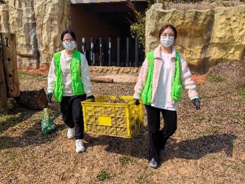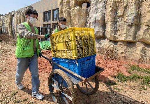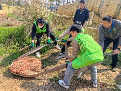 时值三月,春光正好,同志们各个眼神坚定,干劲十足。几位男同志组成了“铁臂移山”小组,在饲养员们的悉心指导与帮助下,齐心协力将场馆内散落的巨石移出工区,便于场馆垫料铺设的开展。