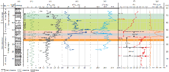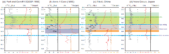 白垩纪温室地球鼎盛时期(~90-95 Ma),地球两极无冰,海平面比现在高约200米, 高、低纬度区温差显著减小。发生于~94 Ma的白垩纪大洋缺氧事件(OAE2)是一次短暂的全球性重大古海洋和古气候事件。期间全球大洋大范围缺氧,导致富有机质黑色页岩沉积,海洋生物灭绝,并对全球碳循环产生扰动,表现为特征的碳同位素漂移(CIE)。OAE2事件是理解地球表层系统在温室状态下受扰动发生全球性重大快速变化过程和机制的一个重要窗口。通常认为,加勒比大火成岩省(Caribbean LIP)形成时的海底火山活动喷出了大量CO2和丰富的营养物质,扰动了全球大洋-大气系统,进而触发了OAE2事件。以往研究表明,指示火山活动的锇同位素(Osi)异常早于OAE2事件的起始,为火山活动触发机制提供了证据。然而,以往研究主要聚焦于北大西洋、北美西部海道以及欧洲陆表海的OAE2记录,而这些记录大多为滞积沉积,分辨率有限,有的甚至存在沉积间断,制约了对这一全球性事件触发过程和机制的认识。