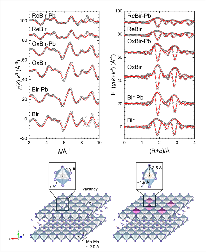 1. 好氧条件下,CN32将部分Mn(IV)还原为Mn(II/III),虽然水钠锰矿的整体矿物相未发生变化,但锰空位及高活性反应位点总数减少,Pb(II)吸附容量从598 mg/g降低到323 mg/g,但这种局部还原通过形成更高电子供给能力的Mn(III)配位氧,增强了Pb-O键的共价性,反而提升了Pb(II)的环境稳定性。