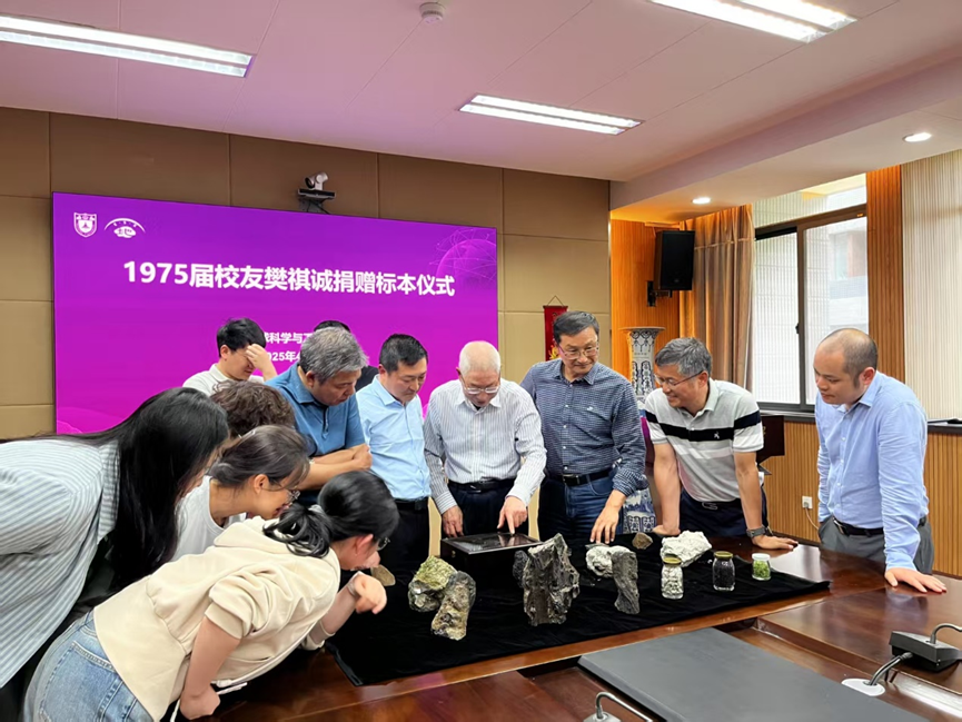 仪式结束后,樊祺诚研究员与与会师生进行了亲切交流,并为广大师生介绍了捐赠标本的重要特征以及采样背后的故事。此次捐赠的火山弹、科马提岩等珍贵岩石标本,将在岩石学相关本科、研究生课程的实验教学中发挥重要作用。