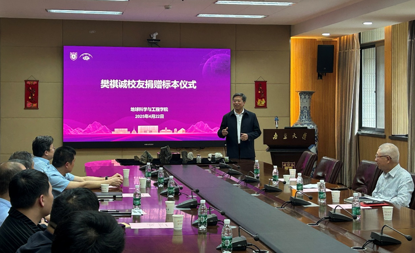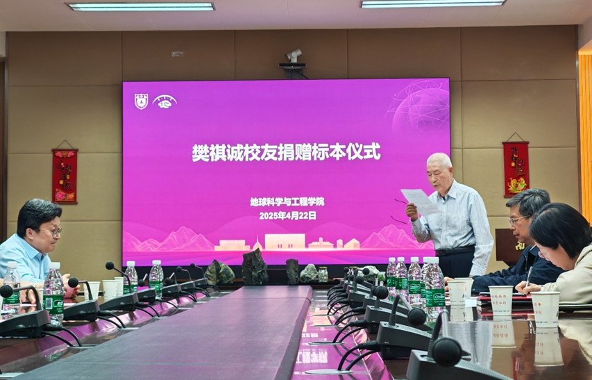 捐赠仪式由徐夕生教授主持,他介绍了樊祺诚研究员的个人经历及其在火山学领域的学术贡献。随后,樊祺诚研究员介绍了自己的捐赠初衷,深情回顾了自己在bw必威西汉姆联官网的求学时光,尤其是对实践教学的深刻印象,表达了自己对母校培养与支持的感恩之情,期盼捐赠的标本未来能够为母院地质学学科在教学与科研领域的发展贡献一份力量。