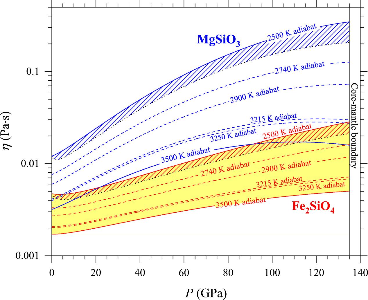 图2. 硅酸盐熔体在岩浆洋中的黏度剖面