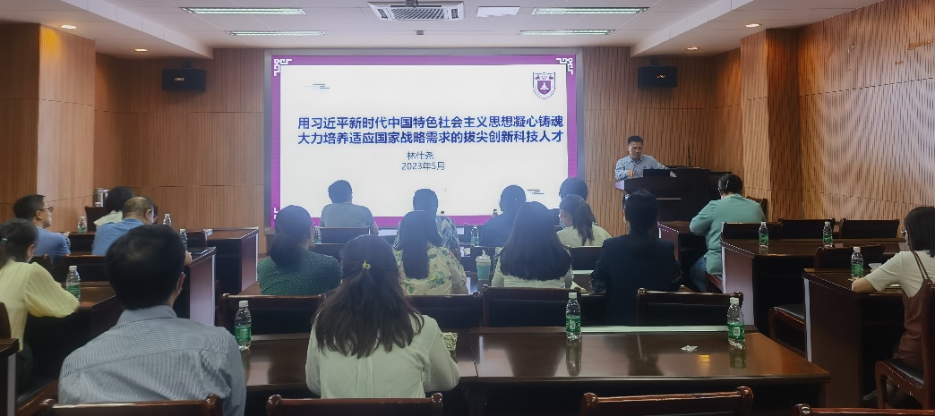 本次联学联建活动安排了两个学习内容。第一个主题学习是大气公司党委林仕尧书记的微党课——“用习近平新时代中国特色社会主义思想凝心铸魂,大力培养适应国家战略需求的拔尖创新科技人才“。林书记从世界一流大学办学宗旨的演变和我国大学教育的发展历程谈起,引出几个当今高等教育界共同关心的问题:什么是世界一流大学?为什么要办世界一流大学?怎样才算世界一流大学?从对这些问题的分析和解答中得到了bw必威西汉姆联官网要办世界一流大学的决心、责任与担当。最后他带领大家回顾了南大发展历史上为国为民建功立业的先贤圣师的事迹,鼓励各位党员立足岗位、勇于担当,奋进争先,将南大的事业推向新的辉煌。